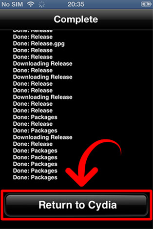 Étape 2 : Appuyez sur Ajouter source et attendez que la source soit ajoutée. à la fin appuyez sur Retour à Cydia.